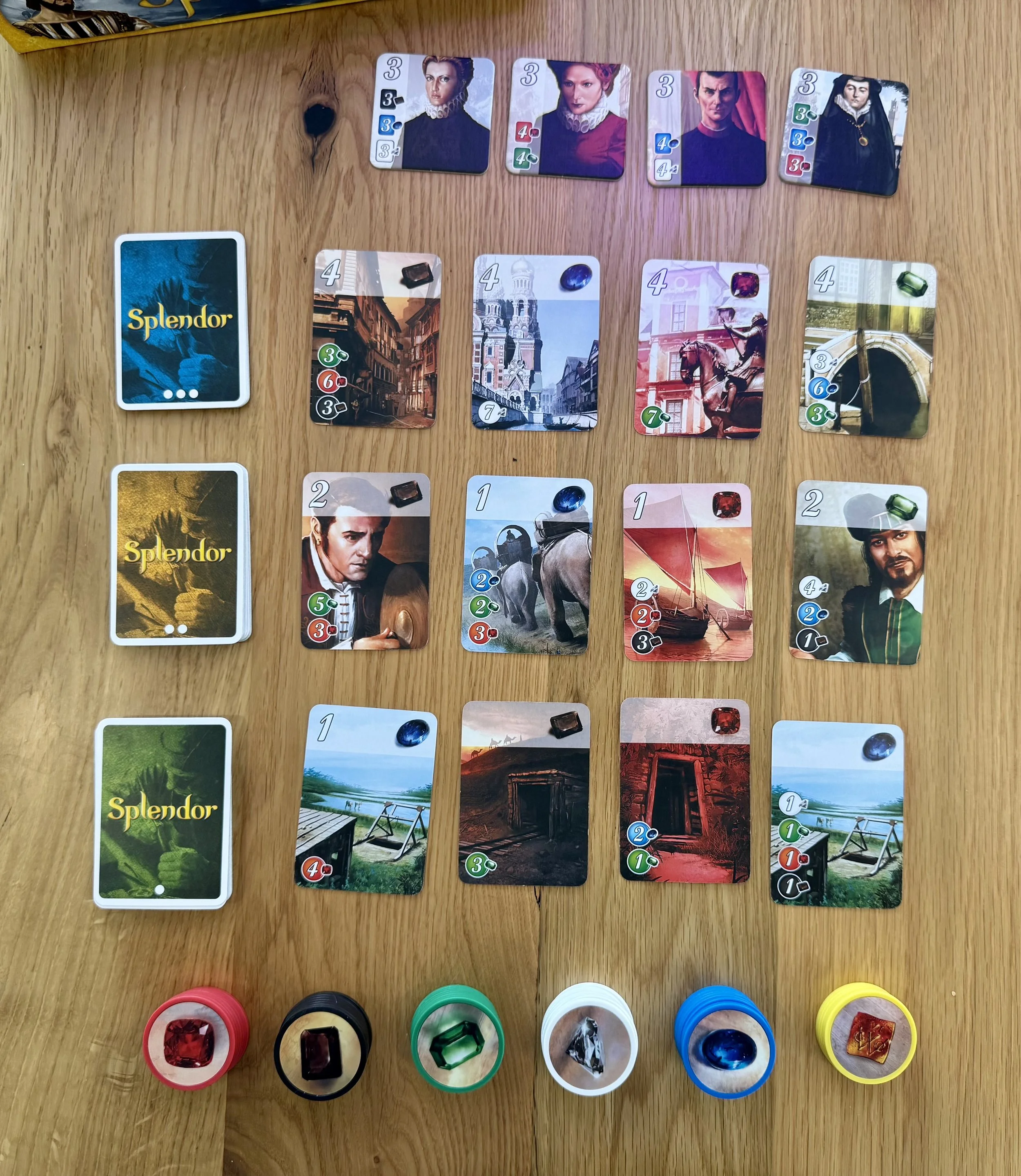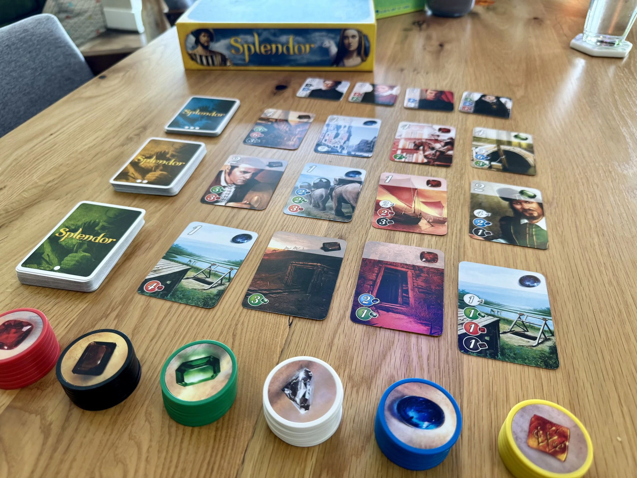 splendor is a 20-minute jewel rush: grab shiny gem chips, trade them for glitzy upgrades, and impress a few well-heeled nobles before anyone else does. first player to hit 15 “look-at-me” points wins, but the real spark is the table talk you’ll mine along the way.