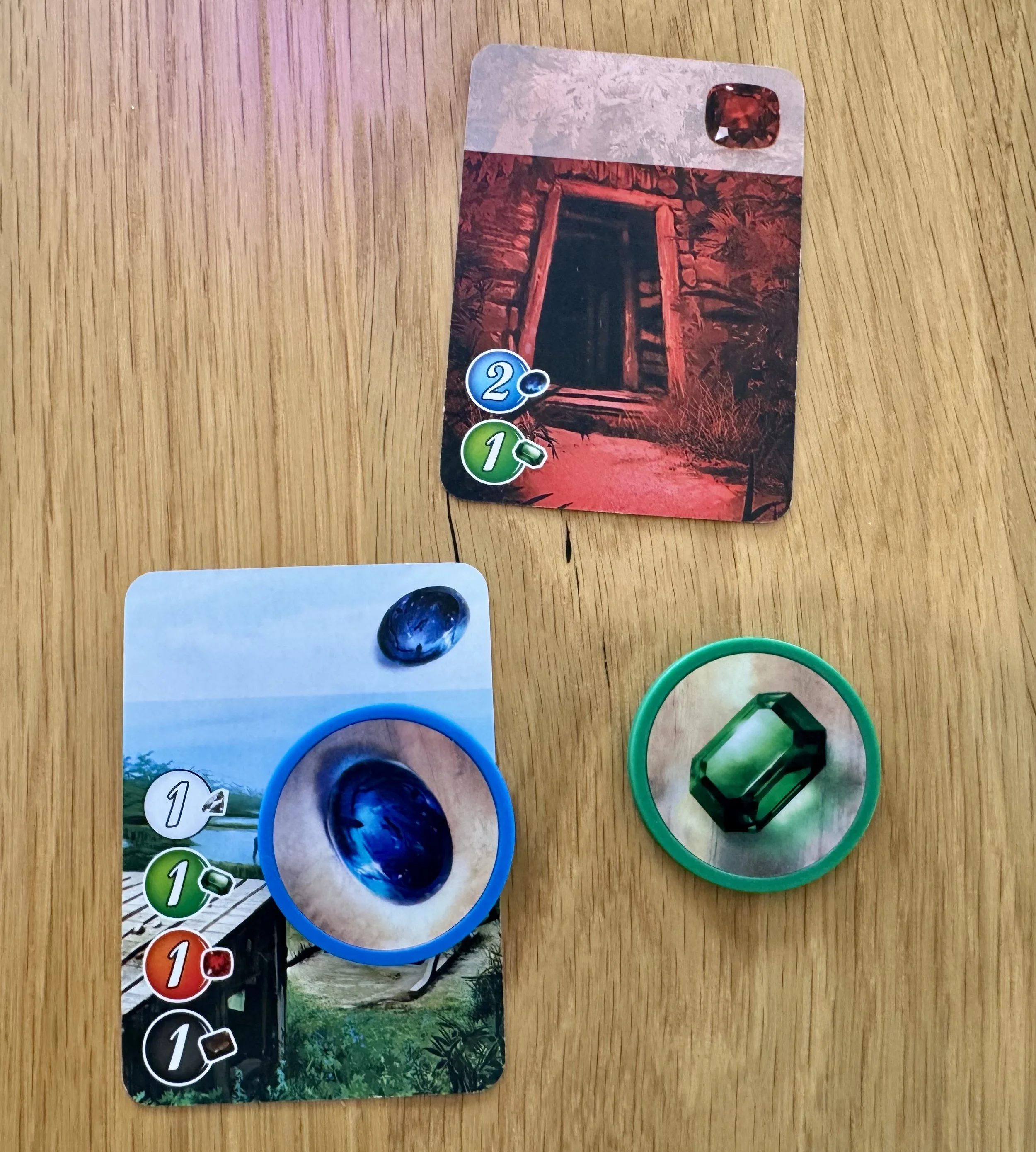 …but if you already bought a green gem card, you use that to lower the cost. You keep your card the rest of the game, even after you buy.