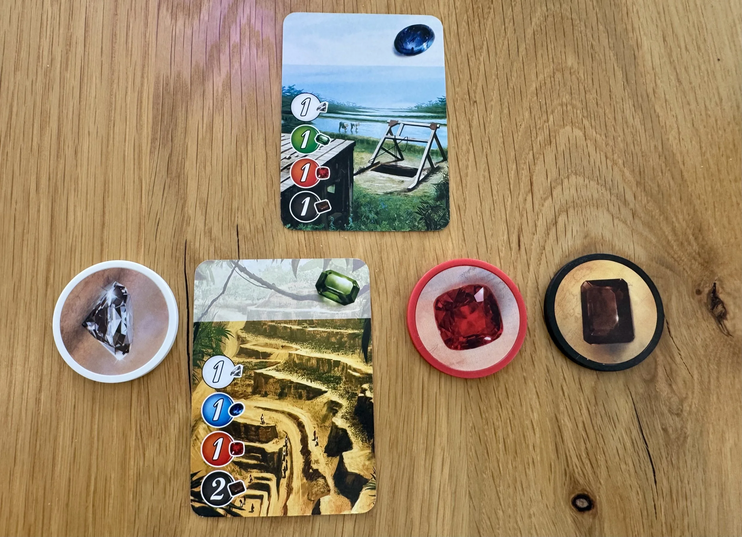 Then that blue gem card can be used to help you buy cards with higher requirements as the game goes on.